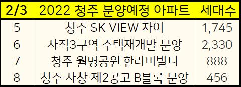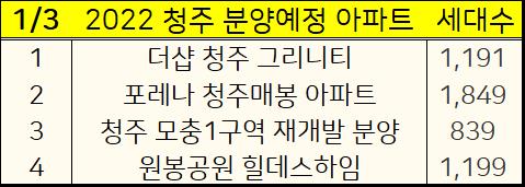 2022년 청주시 아파트 분양계획을 표로 정리했습니다.