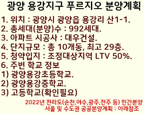 전라남도 광양시 용강지구에 분양예정인 푸르지오 아파트를 정리했습니다.