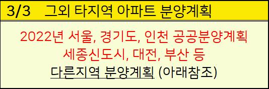 아래 2022년 경기도, 서울, 인천 공공분양일정과 세종시, 대전, 부산 등 다른지역 아파트 분양계획도 참고하세요.