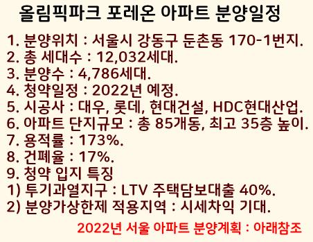 올림픽파크 포레온 아파트 분양계획을 정리했습니다.