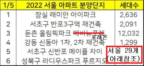 2022년 서울 아파트 분양계획 청약일정