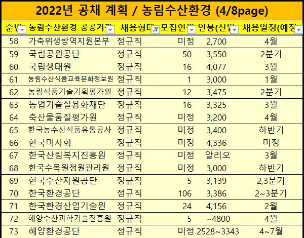 아래 농림수산환경 공기업 채용은 상대적으로 취업경쟁률이 낮은곳이죠.