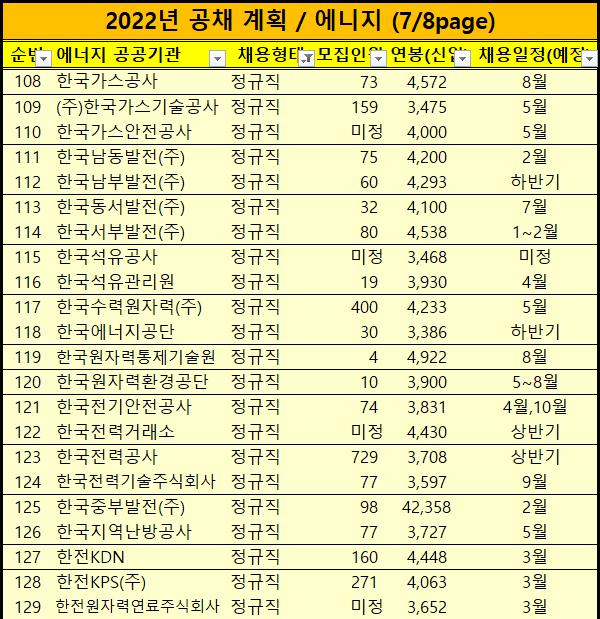 에너지 기술분야 2022년 공공기관 채용계획입니다.