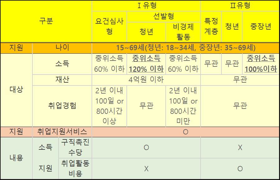 1유형 : 구직촉진수당 : 월50만원씩 최대 6개월간 지급.