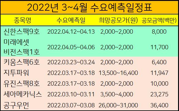 3월 상장주들의 공모주 청약일정 및 수요예측일정, 상장일까지 확인하세요.