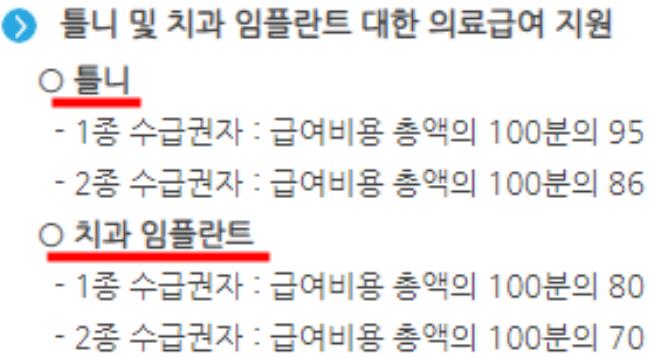 2종 수급권자 임플란트 : 급여비용 총액의 80% 지원.