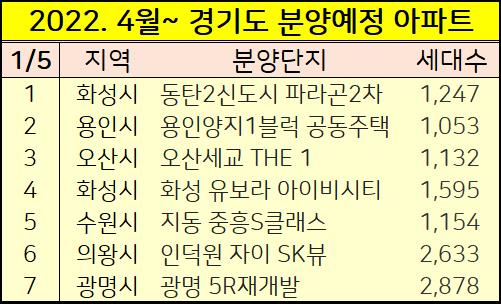2022년 4월부터 2023년까지 경기도 아파트 분양일정을 정리했습니다.