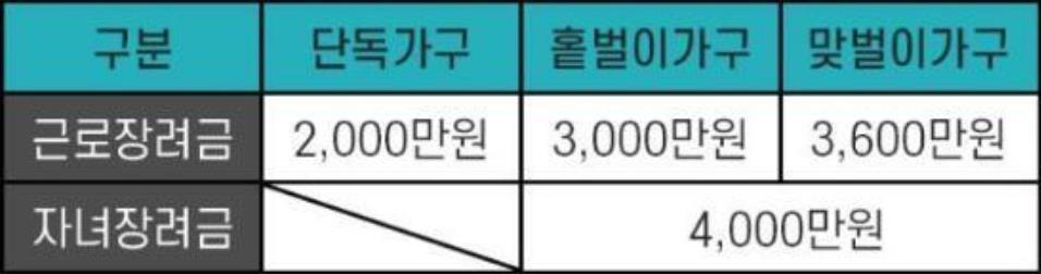 홀벌이가구는 최대 250만원, 맞벌이는 최대 300만원의 근로장려금을 지급합니다.