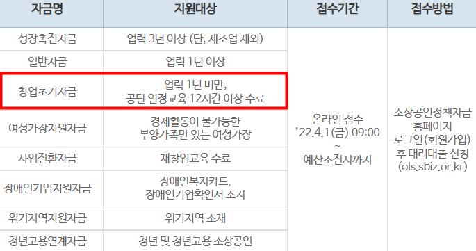 - 소상공인 일반자금(업력1년이상) 접수가능.