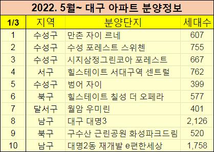 2022년 5월이후 대구에 분양예정인 아파트들을 정리했습니다.