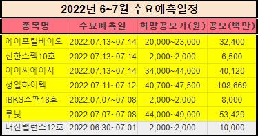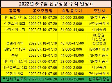 이렇게 2022년 6월 신규상장 주식 일정을 정리했습니다.