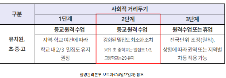 첫번째. 사회적 거리두기 2단계에서는 부분 등교를 하였지만