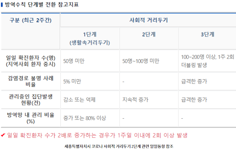 1. 일일 확진자 수가 3단계의 경우 100명~200명이상으로