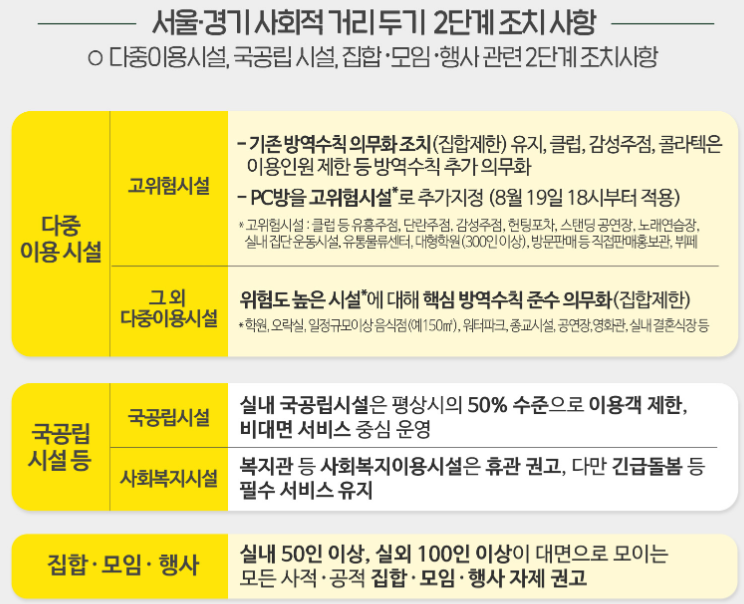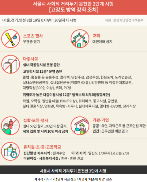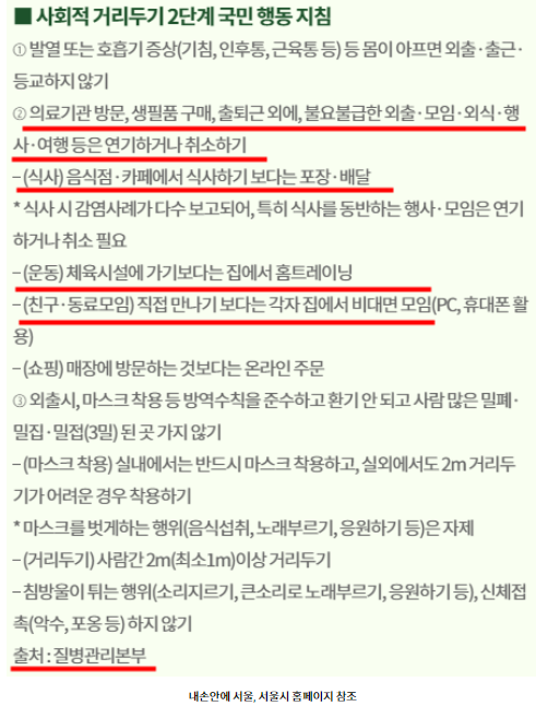 현재 코로나 사회적 거리두기 2단계 주요 지침으로