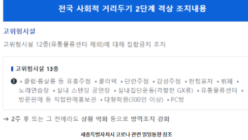 사회적 거리두기 2단계 격상 고위험시설 13종에 대해서 알아보겠습니다.