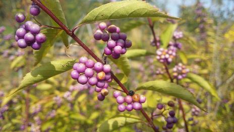 2. 특징 : 꽃은 7월부터 보라빛으로 피며, 열매는 9월에 익는다.