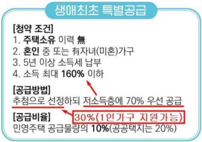 바로 생애최초특별공급 30% 추첨 분양물량에 지원하는것인데요.