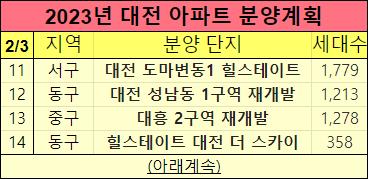 아래 2023년 대전 분양예정아파트들도 표로 만들었으니 참고하세요.