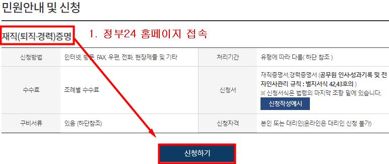 2. 국가 공무원 퇴직자 경력/재직증명 신청.