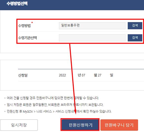 방문수령이나 등기로 받으실수있으니 참고하시기 바랍니다.