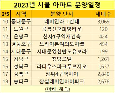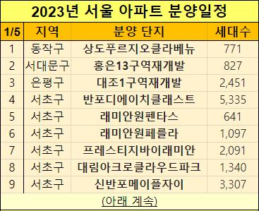 이렇게 2023년 서울에 분양이 예상되는 아파트들을 정리했는데요.