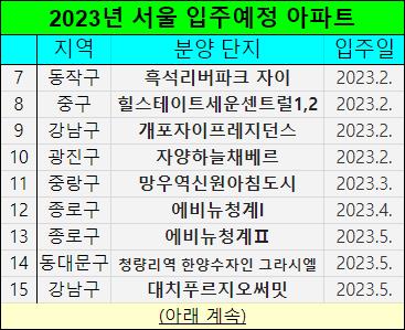 또한 2023년 서울 입주예정 아파트들도 같이 확인해봤습니다.