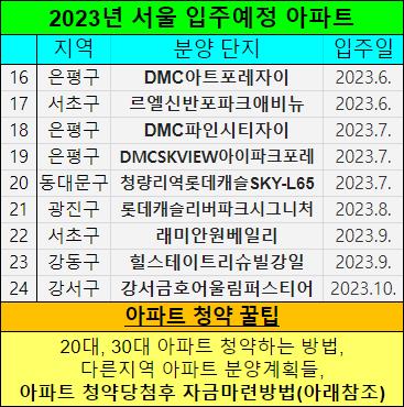 아래 2023년 서울에 입주예정 아파트들도 같이 정리했습니다.