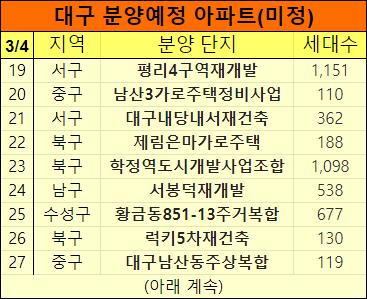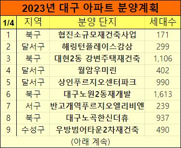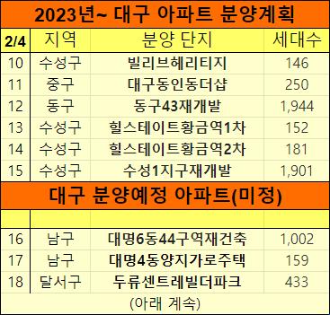 2023년 대구 분양예정 아파트를 표로 정리했습니다.