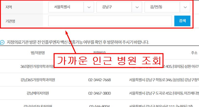 독감 무료 예방접종 병원조회