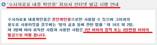 수사자료표 내용확인용으로 출력할경우에는 본인확인용으로만 이용해야합니다.