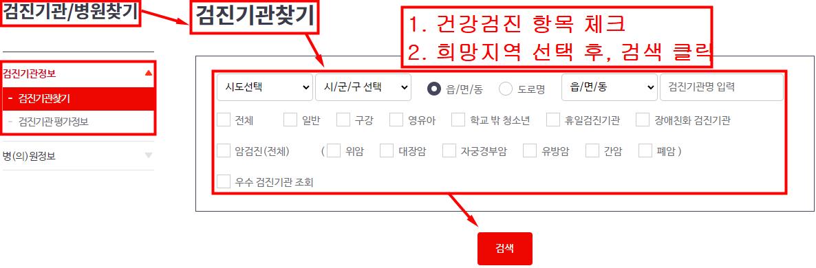 건강검진 항목별 병원 찾기