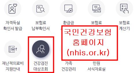 1. 국민건강보험 홈페이지(nhis.or.kr)에서 건강검진 대상조회가 가능합니다.