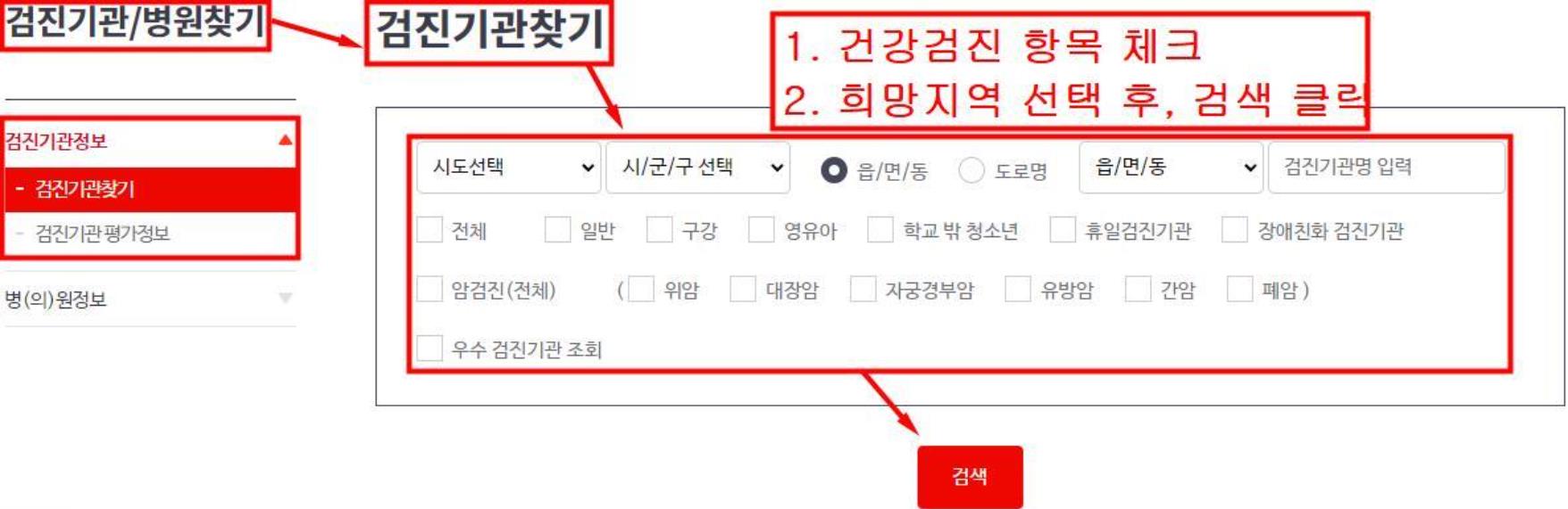 3. 건강검진을 희망하는 지역을 찾습니다.