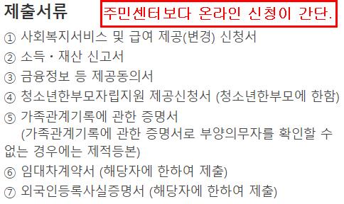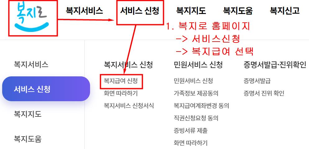1단계 : 주민센터 및 복지로 홈페이지에서 온라인 신청.