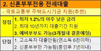 또한 신혼부부전용 전세자금도 표로 정리해서 알려드렸습니다.
