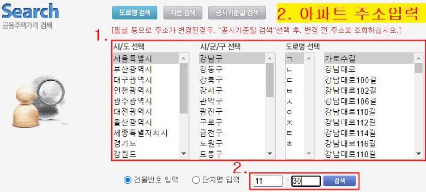 네번째. 아파트의 주소를 입력하고 조회합니다.