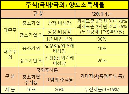 해외주식의 양도소득세율을 표로 만들었습니다.