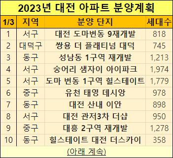 이렇게 2023년 대전광역시 아파트 분양계획을 표로 정리했습니다.