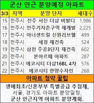 군산 인근지역(김제시, 익산시, 전주시 등) 아파트 분양일정도 같이 정리해놨습니다.