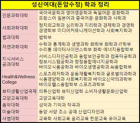 아래 이화여대, 숙명여대, 성신여대 학과를 총정리 했습니다.