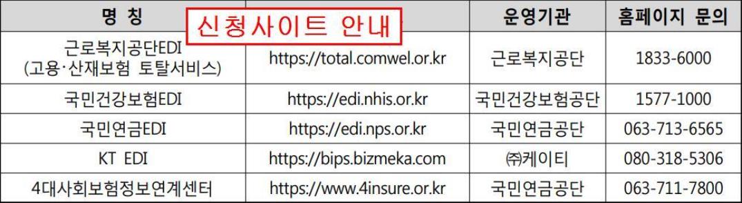 일자리 안정자금 모바일 신청 홈페이지들을 표로 정리했습니다.