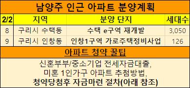 구리시 아파트 분양계획표도 첨부해놨습니다.