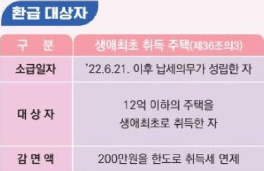 만약 주택을 구입하고 취득세를 이미 냈더라라도 환급받을수있습니다.