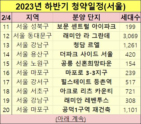 2023년 서울 하반기 분양일정을 표로 정리했습니다.