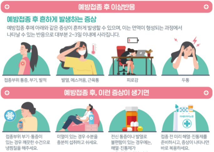 코로나 백신 접종후에 주의해야할 사항들을 정리하였습니다.
