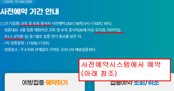 2. 유치원은 교육시설이라고하며 교사, 교직원 등 종사가는 백신 사전예약 신청이 가능합니다.