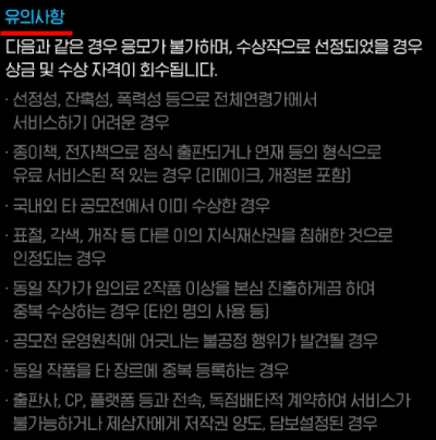 또한 이번 공모전 참가시에 유의사항을 알려드리겠습니다.