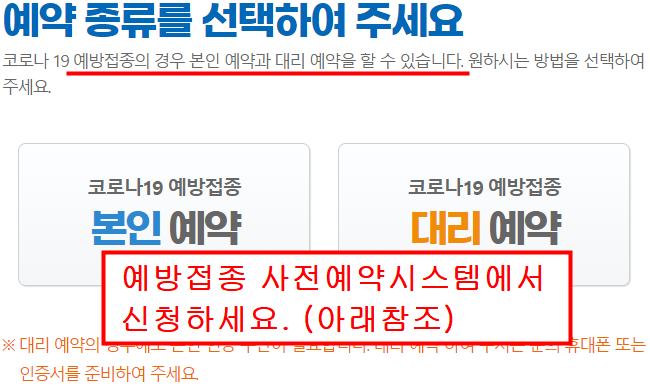 코로나 백신접종 사전에약 홈페이지(ncvr.kdca.go.kr)에서 접수하시기 바랍니다.
