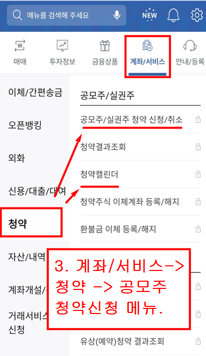 * 바로 청약신청이나 취소, 청약신청 결좌를 조회하시려면 아래쪽 그림을 확인하세요.