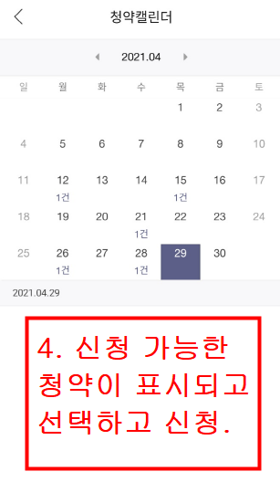* 청약캘린더 달력은 아래 그림을 참조하세요.